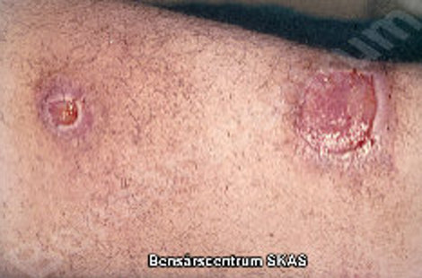 - sår orsakade av patienten själv, t. ex genom att riva sig.